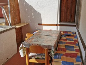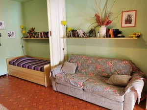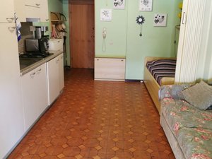 Vicino alla pineta, Monolocale al 1 piano, posto auto privato, unico vano composto da cucina, lavatrice, divano letto, due lettini singoli, bgno con doccia (Tenda), terrazza semiangolare con tenda, condizionatore