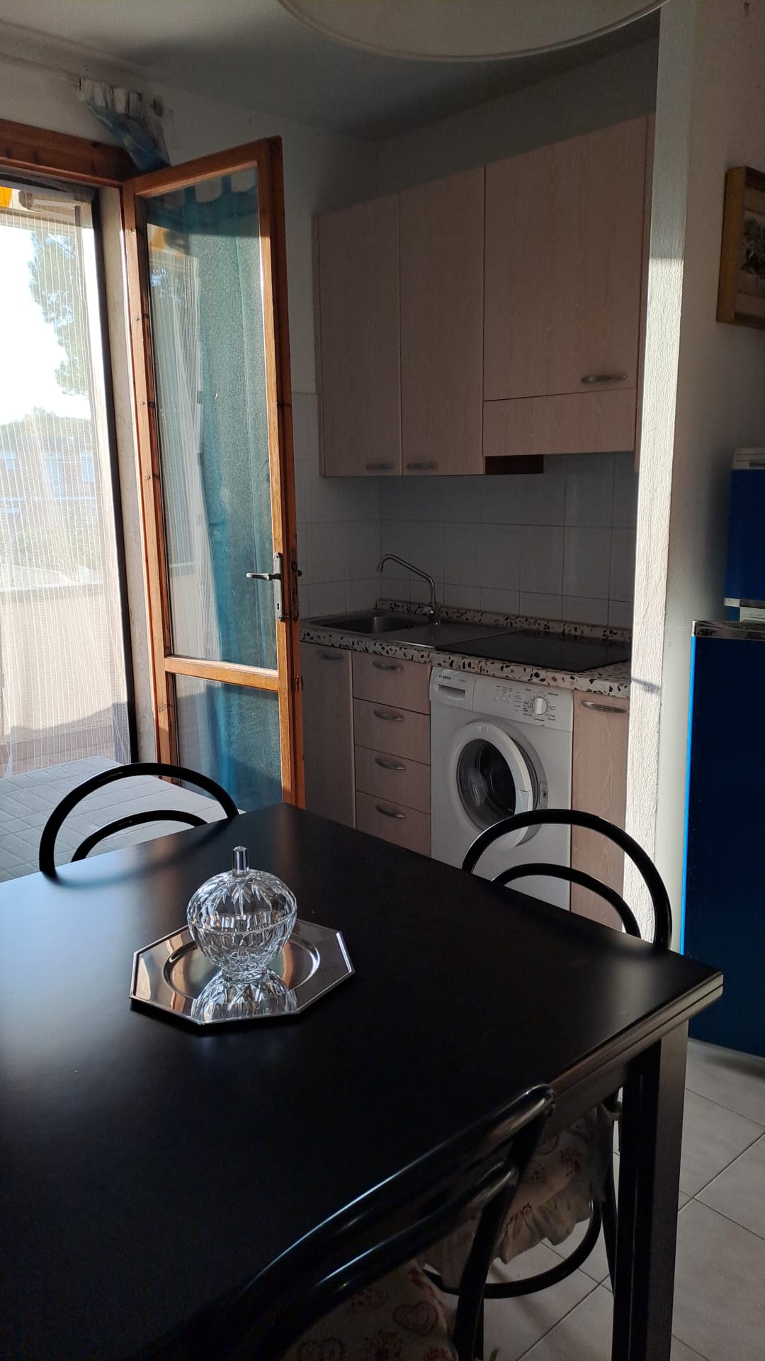 Cir 049007LTN1393Grazioso bilocale mt.400 dal mare, 1 piano con posto auto di proprietà, composto cucina tinello, divano letto matrimoniale, lavatrice e ampio terrazzo tendato, disimpegno, camera matrimoniale più lettino a castello, ampio bagno con cabina doccia.Condizionatore (A Parte)Animali di piccola taglia.