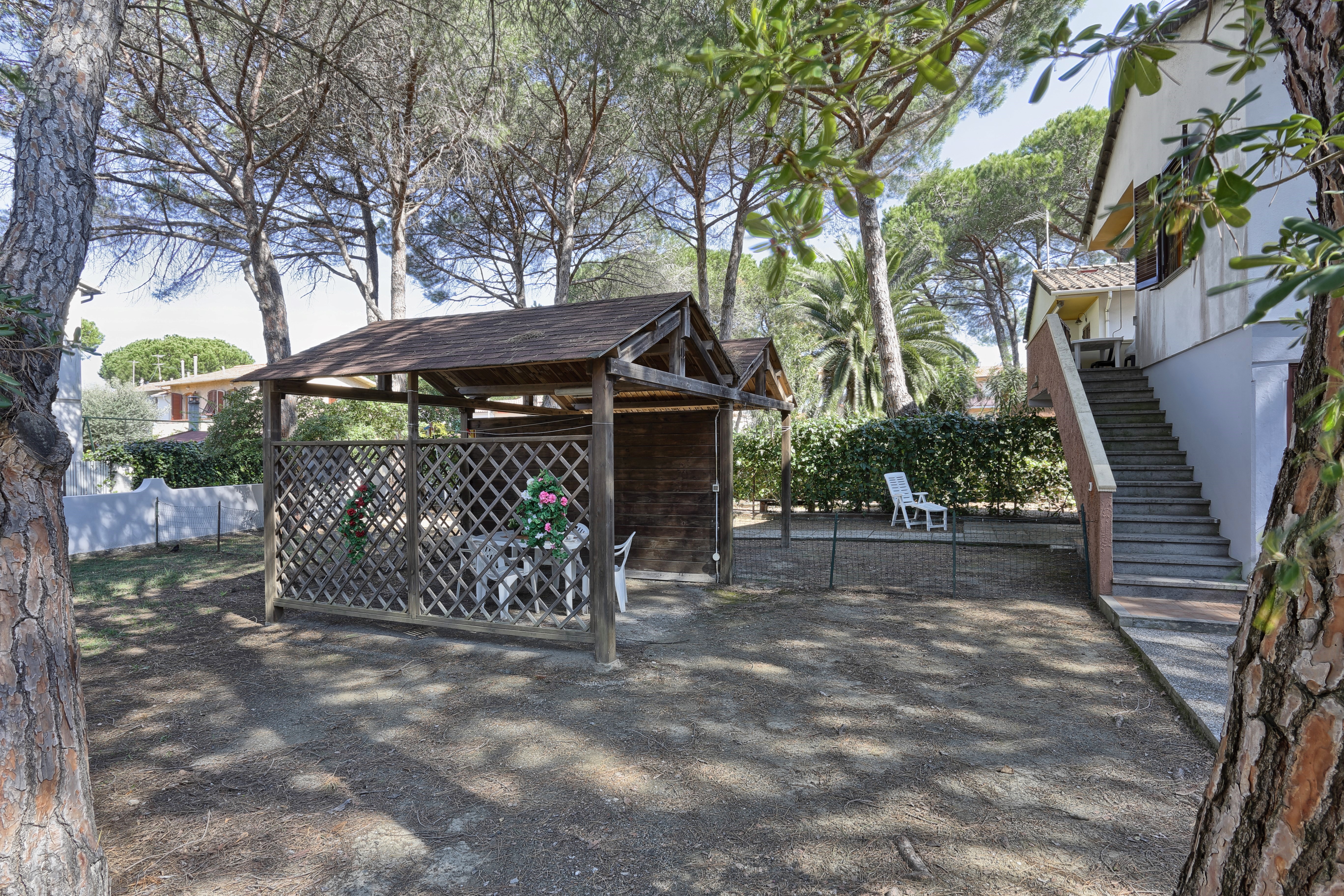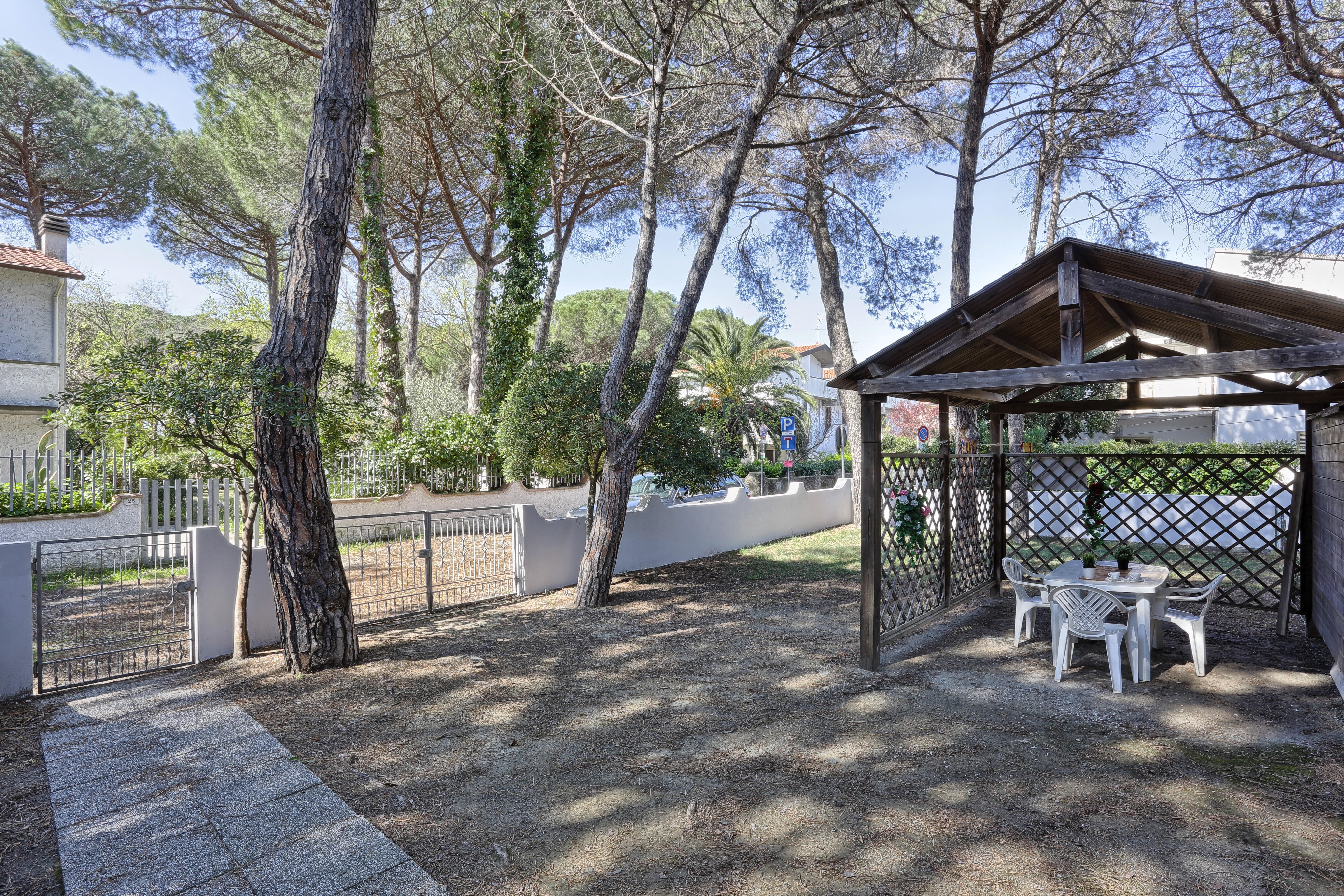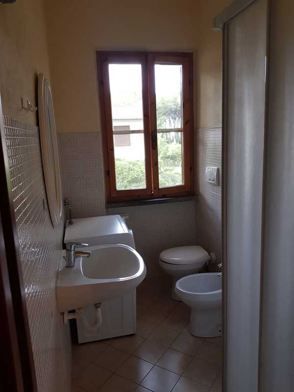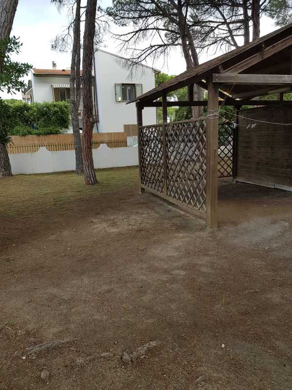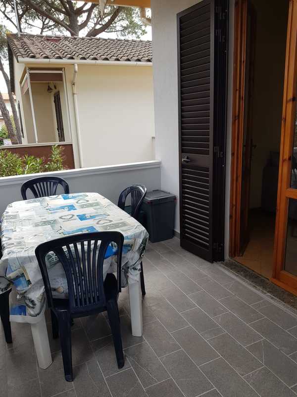 Situato all'interno della pineta della Mazzanta, a pochi passi dal mare, appartamento al primo piano con ingresso indipendente e posto auto privato, composto da cucina tinello con un lettino ed uno estraibile, camera matrimoniale, cameretta con letto a castello e lettino, bagno completamente ristrutturato con doccia e lavatrice.Terrazza con tenda corredato da tavolo e sedie.Il giardino è molto grande, ombreggiato e corredato di tettoria in legno. .SCATTI LUCE A PARTE